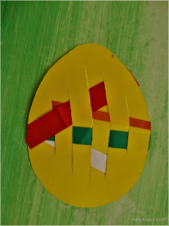 Wspólne dzieło czyli dwie freblowskie pisanki ułożone z wielu pisanek-przeplatanek.